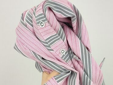 Koszula w paski – luźny krój, krótki rękaw - Wzór: pionowe paski w odcieniach bieli i szarości - Fason: oversize/luźny, lekko wydłużony tył z zaokrąglonym dołem - Rękaw: krótki, swobodny - Zapięci...
