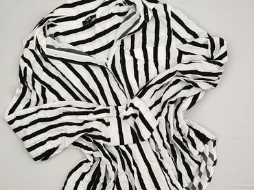 Koszula damska w paski, lekko prześwitująca - Krój: oversize, luźny, z klasycznym kołnierzykiem - Zapięcie: na guziki z przodu - Rękaw: do łokcia (ok. 3/4), mankiety bez zapięcia - Dół: zaokrąglon...