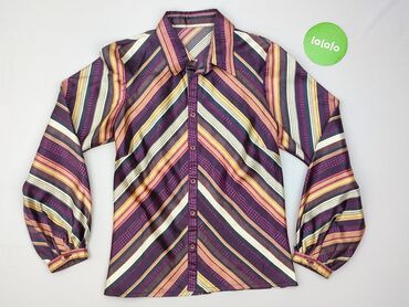 Damska koszula w paski, rozmiar XL - Fason: klasyczna koszula zapinana na guziki, kołnierzyk, długi rękaw z mankietami na guziki - Wzór: wielokolorowe pasy (brąz, oliwkowy, róż/amarant, biel, jasn...