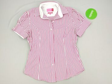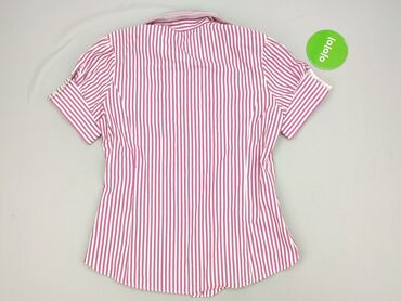 Koszula damska MAFIL - Rozmiar z metki: 40 - Fason: klasyczna koszula z kołnierzykiem, zapinana na guziki z przodu - Rękaw: krótki - Wzór: pionowe paski w odcieniach różu, bieli, oliwkowej zieleni...