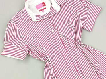 Różowa koszula damska F&F - Krój: taliowana, z zaszewkami podkreślającymi sylwetkę - Rękaw: krótki, lekko marszczony na ramieniu - Dekolt: w serek z listwą i trzema guzikami; klasyczny kołnierzyk ...
