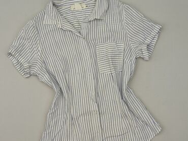 Koszula damska H&M L.O.G.G. - Krój: koszula z kołnierzykiem, zapinana na guziki z przodu - Rękaw: krótki - Wzór: pionowe paski w kolorze niebieskim i białym - Materiał: 100% bawełna (metka na zdję...