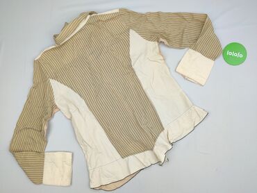 Długi rękawKoszula damska w paski, beżowo-kremowa, z panelami w kontrastowych odcieniach.