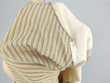 Damska bluzka koszulowa w paski - Klasyczny, pionowy prążek w odcieniach jasnego beżu/szarości i bieli - Długość rękawa: 3/4 z szerokimi mankietami - Zapięcie na guziki na całej długości - Dekolt ...