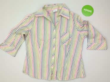 Koszula damska w rozmiarze XL, ozdobiona wielobarwnym wzorem kwiatowym w odcieniach niebieskiego, szarego i białego. Charakteryzuje się klasycznym kołnierzykiem oraz długimi rękawami z mankietami z...
