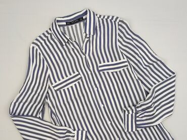 Koszula damska ZARA TRF Collection - Fason: luźna, dłuższa koszula z krótkim rękawem, zapinana na guziki z przodu - Wzór: niebiesko-białe, wąskie paski - Kołnierzyk: klasyczny - Kieszeń: jedna nas...