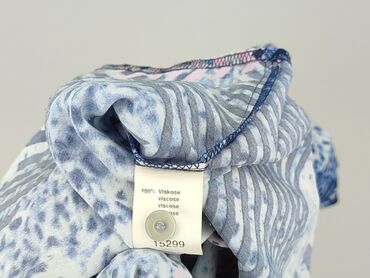 Koszula damska z krótkim rękawem - Wzór: czarno-biały, abstrakcyjny/geometryczny, all-over - Krój: zapinana na guziki z przodu, klasyczny kołnierzyk - Rękaw: krótki - Materiał: 100% wiskoza (metka...Stan: