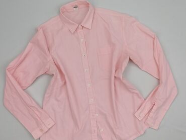 Różowa koszula damska z długim rękawem - Klasyczny kołnierzyk - Zapięcie na rząd drobnych, jasnoróżowych guzików z przodu - Mankiety zapinane na guziki - Prosty, lekko luźny krój - Gładka tkanina ...