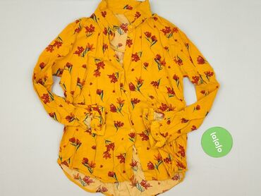 Koszula damska w kwiaty - Kolor: intensywnie żółty z białymi, szarymi i czarnymi motywami kwiatowymi - Krój: klasyczny kołnierzyk, zapięcie na guziki z przodu, długi rękaw - Materiał: 65% bawełna,...Stan: