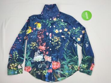Granatowa koszula damska w drobny kwiatowy wzór - Fason: klasyczna koszula z kołnierzykiem, zapinana z przodu na guziki (zapięcie ukryte pod listwą). - Rękawy: długie. - Dół: lekko wydłużony i zao...Stan: