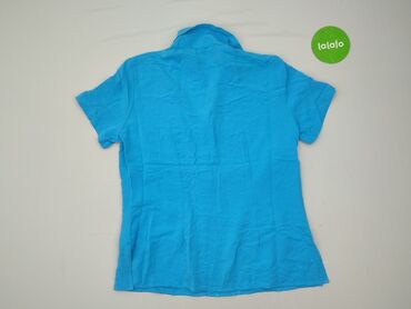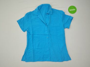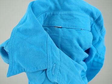 Turkusowa damska koszula/żakiet z krótkim rękawem - Fason: dopasowany, zapinany na 4 duże guziki z przodu - Kołnierz: z klapami, marynarkowy - Rękawy: krótkie z patką i guzikiem - Kieszenie: dwie ...Stan: