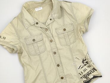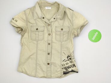 Koszula damska Primark Cares - Rozmiar: S (z metki) - Krój: krótka koszula z krótkim rękawem - Zapięcie: 4 guziki z przodu - Kołnierz: szeroki, klapowy - Wzór: drobna kratka w beżowo-białych odcie...