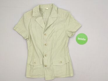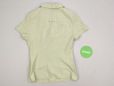 Koszula damska z krótkim rękawem - Kolor: pastelowy żółty - Rozmiar z metki: M - Krój: luźny, prosta linia, klasyczny kołnierzyk - Zapięcie: rząd drewnopodobnych guzików z przodu - Kieszeń: jedna ...