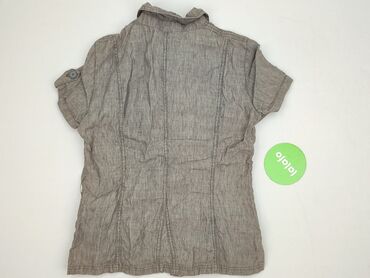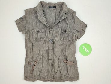 Koszula damska bez rękawów marki Esmara, wykonana z mieszanki lnu i bawełny, co zapewnia przewiewność i komfort noszenia. Charakteryzuje się klasycznym kołnierzykiem i zapięciem na guziki. Szare pa...