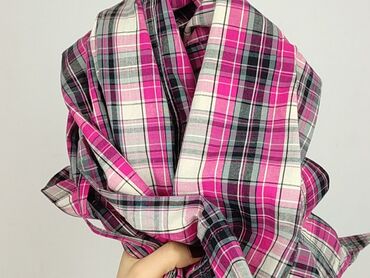 Koszula/tunika damska w kratę - Krój: luźna tunika z zaokrąglonym dołem, długość za biodra - Wzór: duża krata w odcieniach granatu, różu i bieli - Dekolt: bez kołnierzyka (stójka), listwa z guzika...