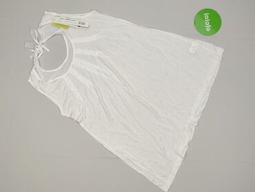 Biały damski top bez rękawów, rozmiar M. - Fason: lekko luźny, z miękko układającym się kołnierzem typu wodospad. - Materiał: delikatna, półprzezroczysta tkanina o lekko kreszowanej/żakardowej fak...