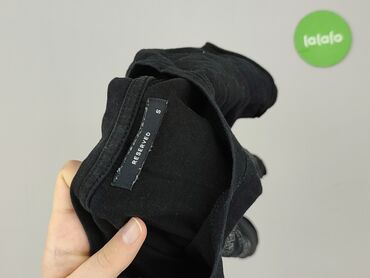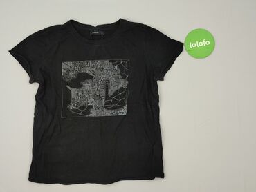 Czarna koszulka damska Reserved YFL, rozmiar S. - Fason: t-shirt z krótkim rękawem. - Dekolt: ozdobny – wokół kołnierza metalowe oczka z przewleczonym czarnym sznurkiem (wiązanie), także akcenty p...