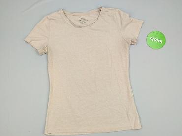 Damska koszulka z krótkim rękawem – beżowa/ekri - Krój: klasyczny T-shirt, okrągły dekolt, dopasowana sylwetka. - Materiał: miękka dzianina bawełniana (skład widoczny na metce na zdjęciu), przyjem...