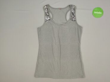 Top damski Reserved - Model: bezrękawnik/top na ramiączkach - Kolor: jasnoszary/melanż - Rozmiar z metki: S - Dekolt: delikatny V - Ozdoby: aplikacja z białych cekinów na przodzie (asymetryczny wz...