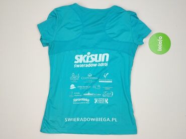 T-shirt damski sportowy, turkusowy - Krój: dopasowany, z krótkim rękawem i okrągłym dekoltem - Rozmiar z metki: S - Materiał: lekka, oddychająca dzianina techniczna (strukturą przypomina siateczkę...