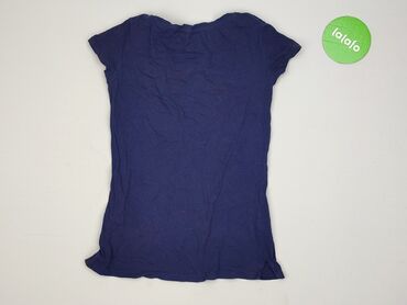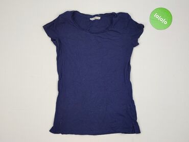 T-shirt damski Calliope, rozmiar S. - Kolor: biało‑granatowe paski (marynarski wzór) - Krój: klasyczny, krótki rękaw, okrągły dekolt obszyty granatową lamówką - Napis na piersi: czerwone, wypukłe l...