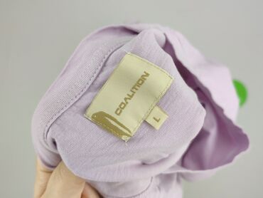 T-shirt damski, gładki, w kolorze lawendowym (jasny fiolet). - Krój: prosty, z krótkim rękawem - Dekolt: okrągły - Materiał: 100% bawełna (informacja z metki) - Tkanina miękka i przewiewna, jednoli...