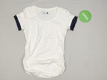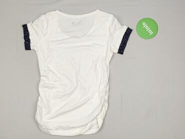 Damska koszulka z motywem marynistycznym - Kolor: biały melanż z granatowym nadrukiem kotwic na całej powierzchni - Dekolt: okrągły - Rękawy: krótkie, wykończone ozdobnymi paskami w kolorach grana...Stan: