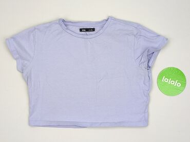 Krótki T-shirt damski Sinsay - Kolor: jasny liliowy/pastelowy fiolet - Krój: crop top, prosty, z krótkim rękawem - Dekolt: okrągły - Materiał: miękka dzianina bawełniana z dodatkiem elastanu (na d...Stan: