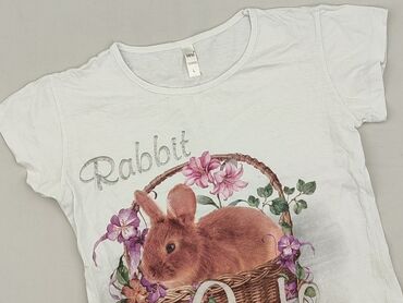 Ciemnoszara koszulka damska z krótkim rękawem i dekoltem w łódkę. Na przodzie znajduje się biały nadruk przedstawiający królika z uszami ozdobionymi różowo-białymi kwiatkami w kropki. Na metce widn...Stan: