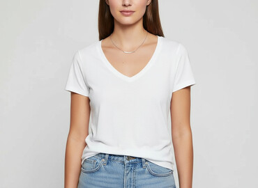 Szara koszulka damska z krótkimi rękawami i dekoltem w kształcie litery V, wykonana z mieszanki bawełny i wiskozy, co zapewnia komfort noszenia i trwałość. Materiał jest miękki w dotyku, a koszulka...