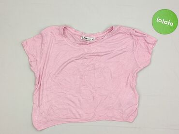Różowy t-shirt damski FB Sister (FSBN Sister) - Krój: krótki/cropped, luźny, z opuszczoną linią ramion - Rozmiar: L (EU/US/CA – oznaczenie na metce) - Dekolt: okrągły - Rękaw: krótki - Materiał: 9...