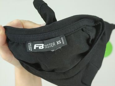 Czarna koszulka damska FB Sister - Marka: FB Sister - Rozmiar z metki: XS - Fason: krótki top/cropped, lekko luźny - Dekolt: okrągły - Rękaw: krótki, opadający - Dół: delikatnie zaokrąglony - Mate...