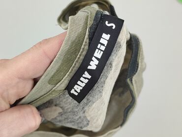 T-shirt damski TALLY WEiJL, rozmiar S/M - Krój: luźny, z krótkim rękawem, klasyczny okrągły dekolt - Wzór: gęsty, kwiatowy print w odcieniach turkusu, błękitu i bieli na czarnym tle - Materiał: mi...