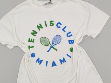 Biała koszulka damska z krótkim rękawem i okrągłym dekoltem. Z przodu dekoracyjny napis „la vie est BELLE” – duże litery „BELLE” wykonane z czarnej koronki na naszytej aplikacji, nadają elegancki, ...