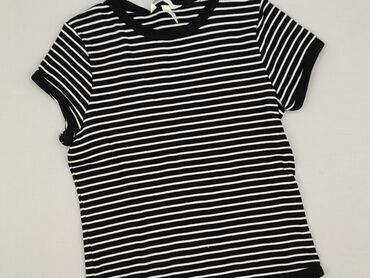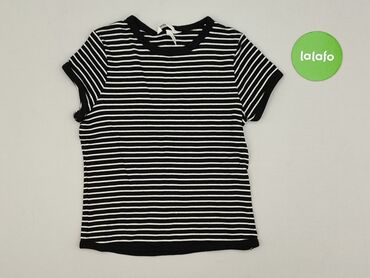 Bluzka damska H&M, rozmiar M - Fason: dopasowany T‑shirt z krótkim rękawem, łódkowy dekolt - Wzór: poziome pasy w kolorze czarnym i białym - Skład materiału (z metki): 70% wiskoza, 30% poliamid – ...