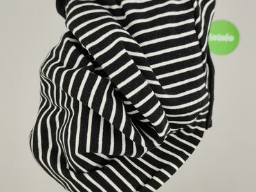 Czarny top damski marki H&M z długim rękawem, ozdobiony poziomymi paskami. Posiada okrągły dekolt z wiązaniem, co dodaje mu casualowego charakteru. Wykonany z mieszanki bawełny i poliestru, co zape...