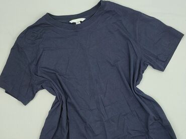 T-shirt damski H&M Basic - Rozmiar: M (EUR M, US M) - Fason: klasyczny t-shirt z krótkim rękawem i okrągłym dekoltem, lekko zaokrąglony dół - Kolor: granatowy - Wzór: drobne białe i jasne gwiazdki...