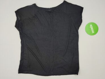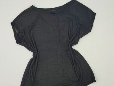 Czarna bluzka damska z krótkim rękawem - Fason: luźny, prosta linia, lekko zaokrąglony dół - Rękawy: krótkie, szerokie - Dekolt: okrągły - Materiał: cienka, miękka dzianina (wygląda na bawełnianą ...