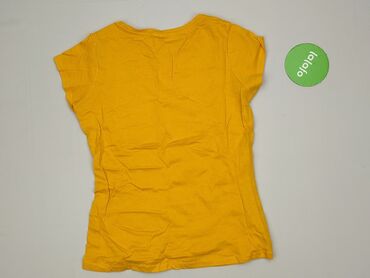 Żółta damska koszulka z nadrukiem – QS by s.Oliver - Rozmiar: S (na metce) - Krój: dopasowany, z krótkim rękawem - Dekolt: w kształcie litery V - Materiał: cienka, miękka dzianina bawełniana (jedn...