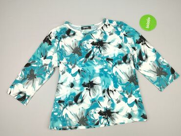 OkrągłyKoszulka damska marki ERBOSSI z okrągłym dekoltem, wykonana z mieszanki bawełny i poliestru. Materiał w kolorze białym, turkusowym, czarnym i szarym ozdobiony jest abstrakcyjnym kwiatowym wzorem. Rękawy o długości 3/4. Idealna do codziennych stylizacji, zapewnia komfort noszenia.