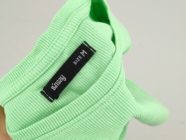 Koszulka damska Sinsay - Model: klasyczny T-shirt z krótkim rękawem - Kolor: intensywna zieleń - Rozmiar: M (na metce) - Fason: prosty, okrągły dekolt, lekko luźny krój - Materiał: 100% bawełna – ...Lekka, damska koszulka Sinsay w rozmiarze M. Krótki rękaw i okrągły dekolt zapewniają komfort noszenia. Idealna do noszenia na co dzień, na spacer, czy do stylizacji sportowych. Jasnozielony kolor ożywi każdą garderobę. Materiał prążkowany, dopasowujący się do sylwetki.