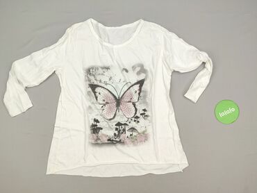 Długi rękawBiała damska koszulka z długim rękawem, ozdobiona nadrukiem motyla w odcieniach różu i szarości. Wzór motyla jest wzbogacony o detale w postaci grzybów i elementów roślinnych. Koszulka charakteryzuje się luźnym krojem i okrągłym dekoltem, co zapewnia komfort noszenia. Idealna do codziennych, swobodnych stylizacji.