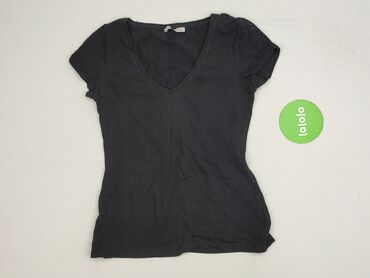 Czarna koszulka damska z krótkim rękawem - Klasyczny, lekko dopasowany krój - Dekolt w kształcie litery U (łagodnie zaokrąglony) - Gładka, jednolita tkanina bez nadruków - Miękki, cienki materiał ...Stan: