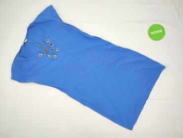 Niebieska sukienka damska z dekoltem w kształcie litery V, idealna na codzienne stylizacje. Charakteryzuje się krótkimi rękawami i zapięciem na zamek błyskawiczny z tyłu, co zapewnia łatwe zakładan...