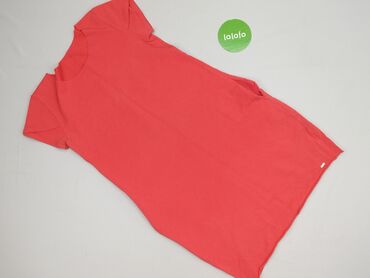 Sukienka damska t-shirtowa, kolor koralowy - Fason: rozszerzana ku dołowi, luźno opływająca sylwetkę - Rękaw: krótki - Dekolt: okrągły - Długość: przed kolano/kolano (zależnie od wzrostu) - Rozmia...