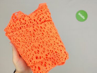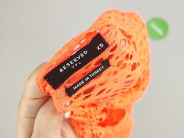Bluzka damska Reserved (linia YFL), rozmiar L. - Kolor: neonowy pomarańcz - Materiał: elastyczna, prążkowana dzianina o wyraźnej fakturze - Fason: luźny, krótki boxy - Rękawy: 3/4 - Dekolt: półgol...