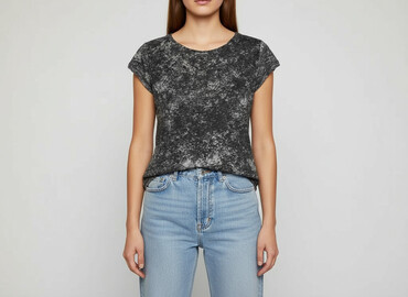 - Kolor: czarno‑szary, marmurkowy/stone wash