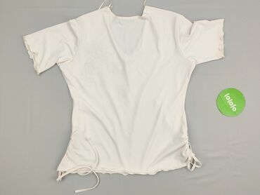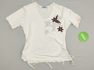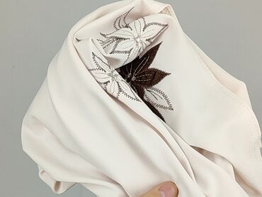 Bluzka damska BM, rozmiar M. - Kolor: kremowy/ecru - Krótki rękaw - Dekolt okrągły - Przód z ozdobnym panelem w roślinnym, beżowym wzorze - Listwa z guzikami dekoracyjnymi na środku - Delikatnie e...