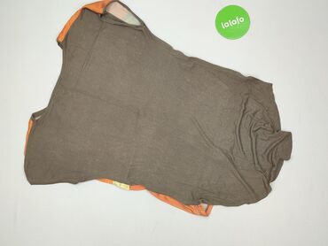 Bluzka damska z krótkim rękawem - Krój: luźny, lekko zaokrąglony dół, dekolt w serek (V-neck) - Przód: efektowny, kontrastowy panel z kwiatowym printem w odcieniach granatu, niebieskiego, bieli i ...