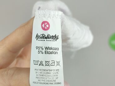 Biała tunika/koszulka damska Andzela - Marka: Andzela - Rozmiar z metki: L/XL - Krój: luźny, przedłużany dół o lekko zaokrąglonej linii - Dekolt: głęboki V z wycięciem z przodu - Rękaw: krótki - D...